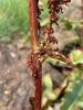 Rumex crispus (curled dock), see plant distribution map and, in 2014, found for the first time on Rumex obtusifolius (broad-leaved dock). In Europe (Latvia) it has been found on Rumex confertus along river banks.